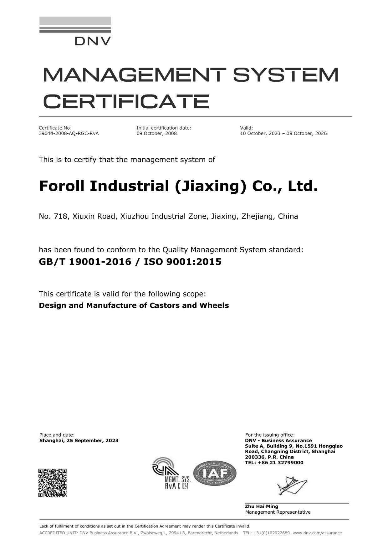 Quality is the life of a company. Therefore, quality control is not a trend topic for us, but tradition. Quality permeates every aspect of Foroll operations: only optimum raw materials are selection on receipt;each and every component is checked after each individual production step; each and every lot wheel and castor is tested to ISO 22878~22884 and EN 12527~12533 standards before leaving our factory. Our constantly evolving quality system ensures appropriate controls are in place at all times.