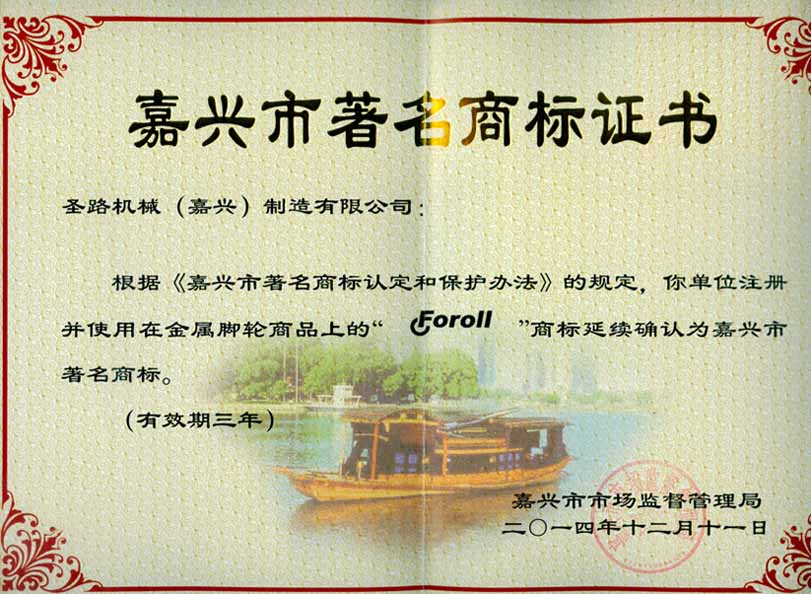 Foroll brand has successfully renewed as Famous Brand of Jiaxing City for another three years. Foroll sincerely thanks all the customers for your support, and Foroll will continuously supply you with the most creative and qualified products in castor and wheels.